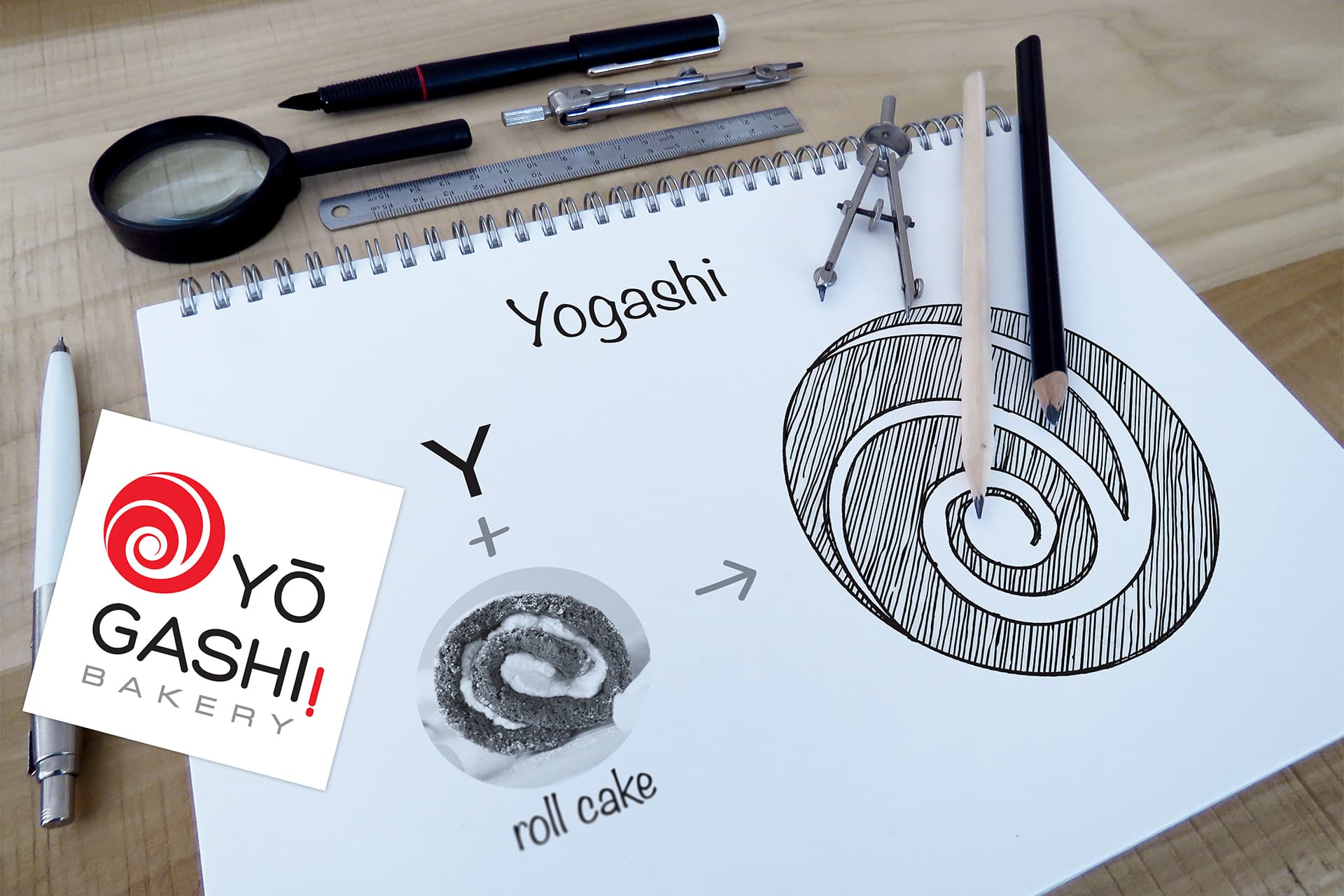 Yogashi bakery logo design concept and process
